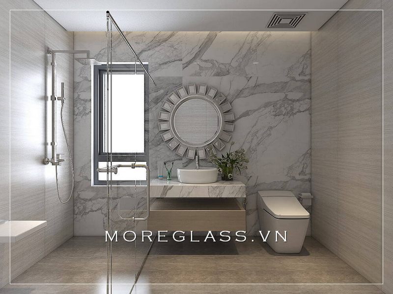 Thiết kế phòng tắm chung cư hiện đại, thoáng rộng khi kết hợp với các vật liệu như gạch và kính