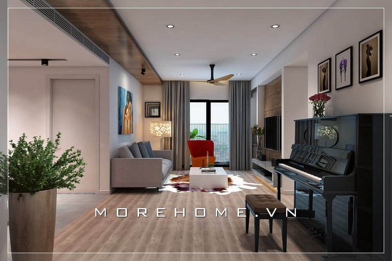 Phong cách hiện đại tạo vẻ đẹp sang trọng cho phòng khách căn hộ chung cư.