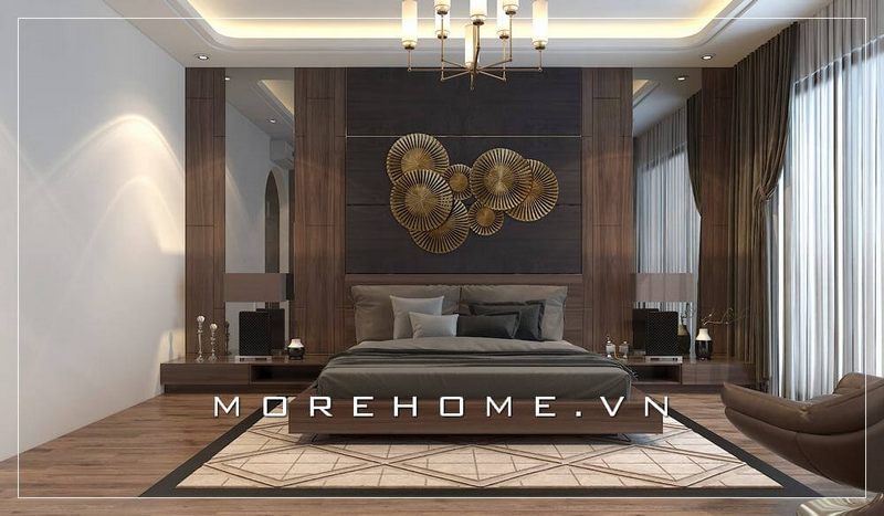 Gợi ý mẫu giường ngủ gỗ công nghiệp màu nâu sang trọng cho phòng ngủ chung cư, nhà phố hiện đại