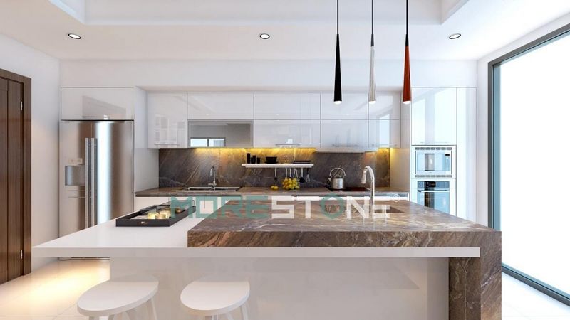Đá bàn đảo bếp với ưu điểm sáng bóng mang đến những giá trị thẩm mỹ cho không gian sống của mọi gia đình Việt.