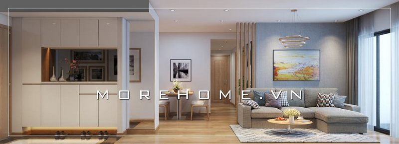 Lựa chọn mẫu sofa hiện đại kiểu dáng văng tiện lợi với khung gỗ óc chó cao cấp cùng vải bọc tone trắng tinh tế cho phòng khách căn hộ chung cư đầy ấn tượng.