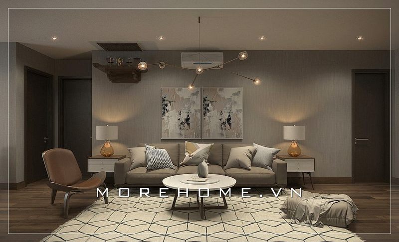 Thiết kế phòng khách đầy ấn tượng với 2 tone màu ghi và sáng sang trọng