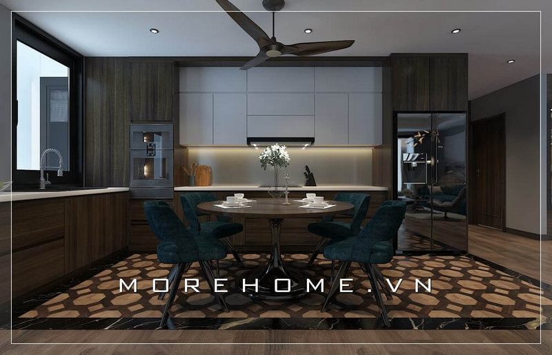 Bàn ăn nhỏ với thiết kế đơn giản phù hợp với chung cư diện tích hạn chế mang đến sự hiện đại, tiện nghi