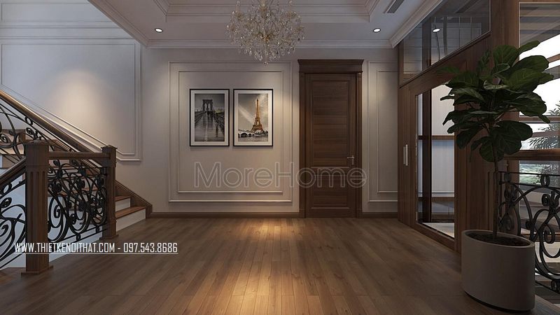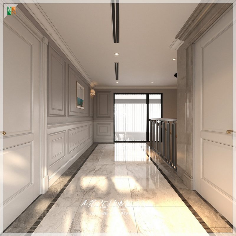 Để tối ưu hóa sự sử dụng nguồn ánh sáng tự nhiên trong biệt thự, cửa kính trong suốt là lựa chọn tốt nhất cho hành lang.